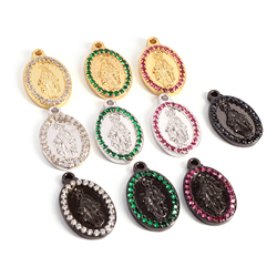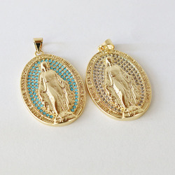 Cz7511 सोने की प्लेटेड कुंवारी मैरी लैटिन अंडाकार आकर्षण पेंडेंट, सेंट सीज़ ओवल पदक आकर्षण