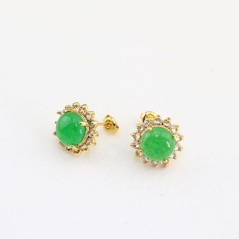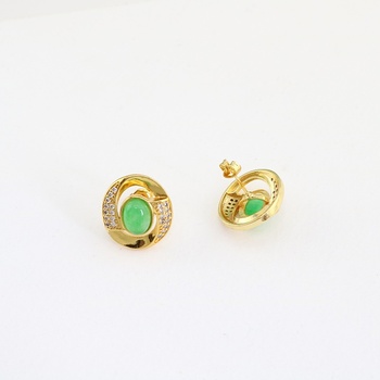 ईएल1158 नए आगमन 18k सोने की प्लेटेड सर्कल घुमावदार जिरकॉन बोल्ड शैली वाली हरी पत्थर की बालियां दैनिक औपचारिक गौण