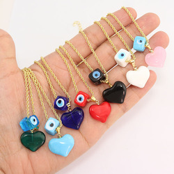Ng1065 फैशन 18k सोने की प्लेटेड लम्पवर्क ग्लास बुरी आंखें क्यूब बीड और दिल की पेलेंट चेन हार