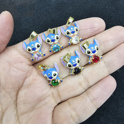 Cz9305 प्यारा 18k सोना प्लेटेड एनमेल ब्लू एलियन प्रेरित कार्टून लिलो सिलाई पत्थर बच्चों के साथ