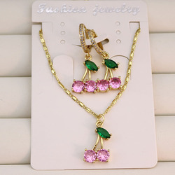 18k सोने की प्लेटेड क्रिस्टल cz पत्थर चेरी चेरी चेरी चरस श्रृंखला लेरिंग नेकलेस हूप महिला लड़कियों के लिए गहने सेट