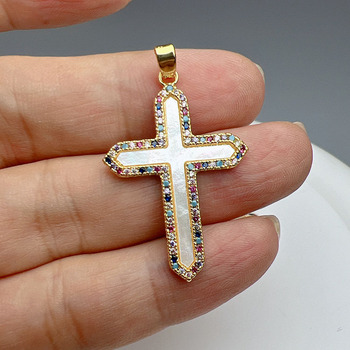 CZ9286 مطلي بالذهب متعدد الألوان أحجار الزيركونيا مرصعة بقشرة أذن البحر الأبيض والوردي قلادة متقاطعة