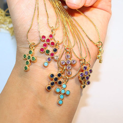 NZ1542 مصغرة صغيرة 18 قيراط الذهب متعددة الألوان الماس مكعب زركونيا مكعب عبر سلسلة قلادة الدين المجوهرات الدينية