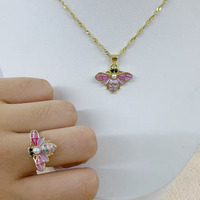 S11494 Chic Cute 18k Gold Plated Enamel Bee Insect Charm Pendant Chain Necklace Ring Women Accessories Jewelry Sets