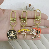 KC1030 18k Gold Plated Bag Charm Gold Enamel Anime Powerpuff Girls Charm Purse Charms Accessory Keychain Gift for Her