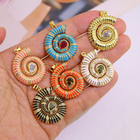 CZ8832 مكتنزة مطلية بالذهب عيار 18 قيراط تشيكوسلوفاكيا مرصعة بالمينا البحرية نوتيلوس قلادة كلاسيكية من قشرة البحر قلادة نسائية لوازم قلادة