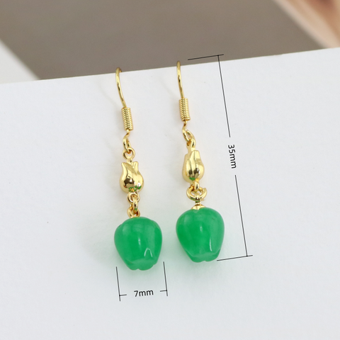 EYL1078 Cute Apple Shaped Natural Green Stone Hook Drop Earrings Brass Tulip Design Novelty Dangle Earring for Girl Accessories