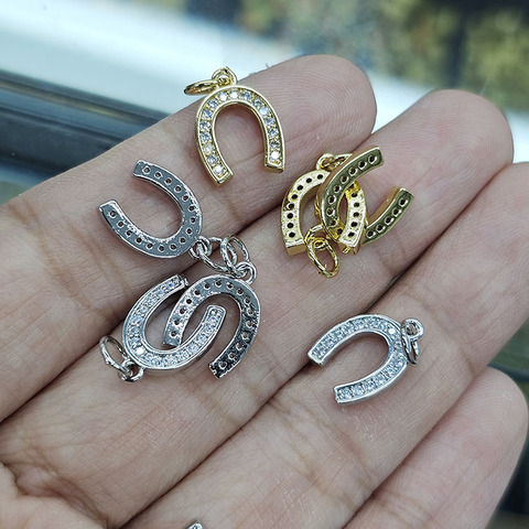 CZ9290 Dainty Mini 18k Gold Silver Plated CZ Pave Horseshoe Charm Pendants Little Gold CZ Zircon Brass Charm Pendants