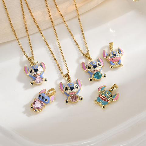 NZ1653 أزياء لطيف 18 قيراط مطلي بالذهب المينا متعدد الألوان غرزة الكرتون سحر ليلو سلسلة قلادة مجوهرات للفتيات النساء