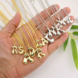 NM1381 collares con letras iniciales del alfabeto hinchado 3D de burbujas chapadas en oro de 18 quilates, joyería con iniciales de la letra del alfabeto, joyería inicial de la mujer de 26 de A-Z