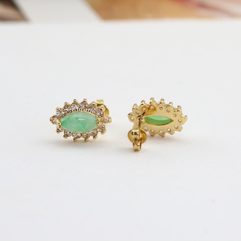 EYL1018 Mini boucles d'oreilles chic en jadéite verte ovale en zircon plaqué or pour cadeau de fête et d'anniversaire.
