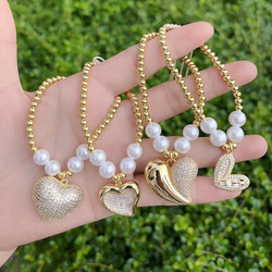 Accessori donna BC1592 doppio strato grezzo 4mm 18k oro accenti sfera in rilievo CZ Micro pavè cuore bracciale elastico