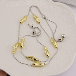 S1236 gioielli moda oro e argento 2 toni martellato pepita perline con perline in rilievo Bolo catena bracciale collana da donna