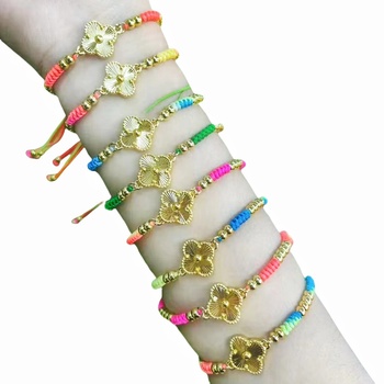Accessori donna BC1591 doppio strato grezzo 4mm 18k oro accenti sfera in rilievo CZ Micro pavé iniziale lettera braccialetto elastico