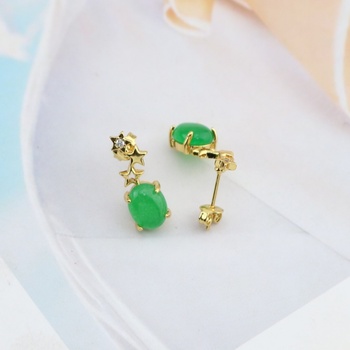 Orecchini a goccia in giada ovale naturale con stella in strass placcato oro 18k in ottone placcato oro naturale
