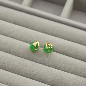 EYL1029 piccoli orecchini artistici con foglia di giada verde placcato oro vero e tondo borchie in giadeite per regalo da donna