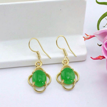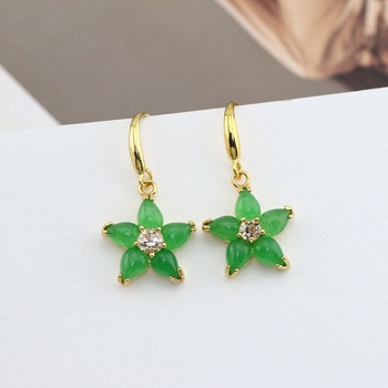 EYL1080 orecchini con gancio a goccia in oro placcato a quattro petali di quarzo ovale in giada per regali da donna