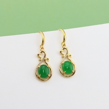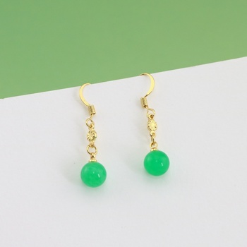 EYL1079 vendita calda di perline rotonde in pietra di giada verde placcato oro classico gancio orecchini pendenti stile orientale gioielli