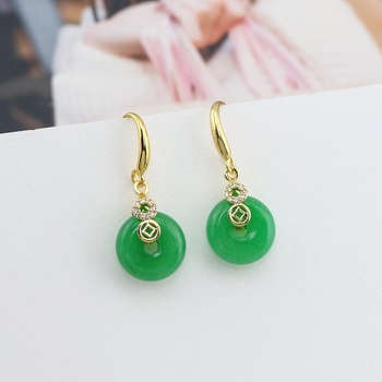 Orecchini in giada verde delicati in stile Vintage EYL1026, orecchini estetici placcati oro Fine in giadeite naturale