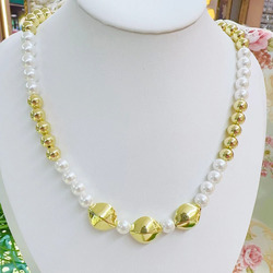 NM1331 collana da donna con perline e perle in oro 18k con perline a tripla pietra focale in oro