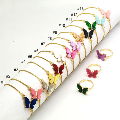 BC1312 Thời Trang Mạ Vàng Brass CZ Micro Pave Bướm Đầy Màu Sắc Chuỗi Đồng Cổ Tay Vòng Đeo Tay Nữ