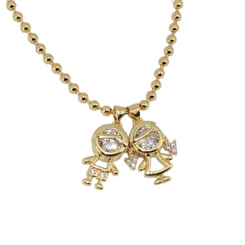 NZ1428 Dainty 18K Chapado en oro Zircon Micro Pave Niño y Niña Niños Niño Niños Encanto Colgante Bola Cadena Collar