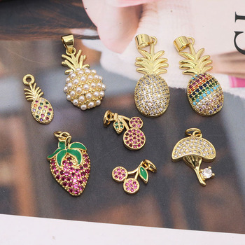 Mini nhỏ 18K mạ vàng CZ Đá Trái cây nhiệt đới quyến rũ, nhỏ Cubic Zirconia Cherry dứa dâu tây quyến rũ Mặt dây chuyền