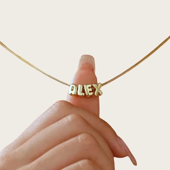 NM1307 Mini joyería personalizada regalo personalizado placa de identificación collar 3D burbuja Puff letra inicial nombre Collar para mujer