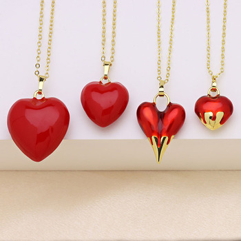 Nm1342 Phụ Nữ Sang Trọng 18K Vàng Sáng Bóng Mạ 3D Men Red Phồng Phồng Phồng Bong Bóng Tình Yêu Trái Tim Mặt Dây Chuyền Chuỗi Vòng Cổ