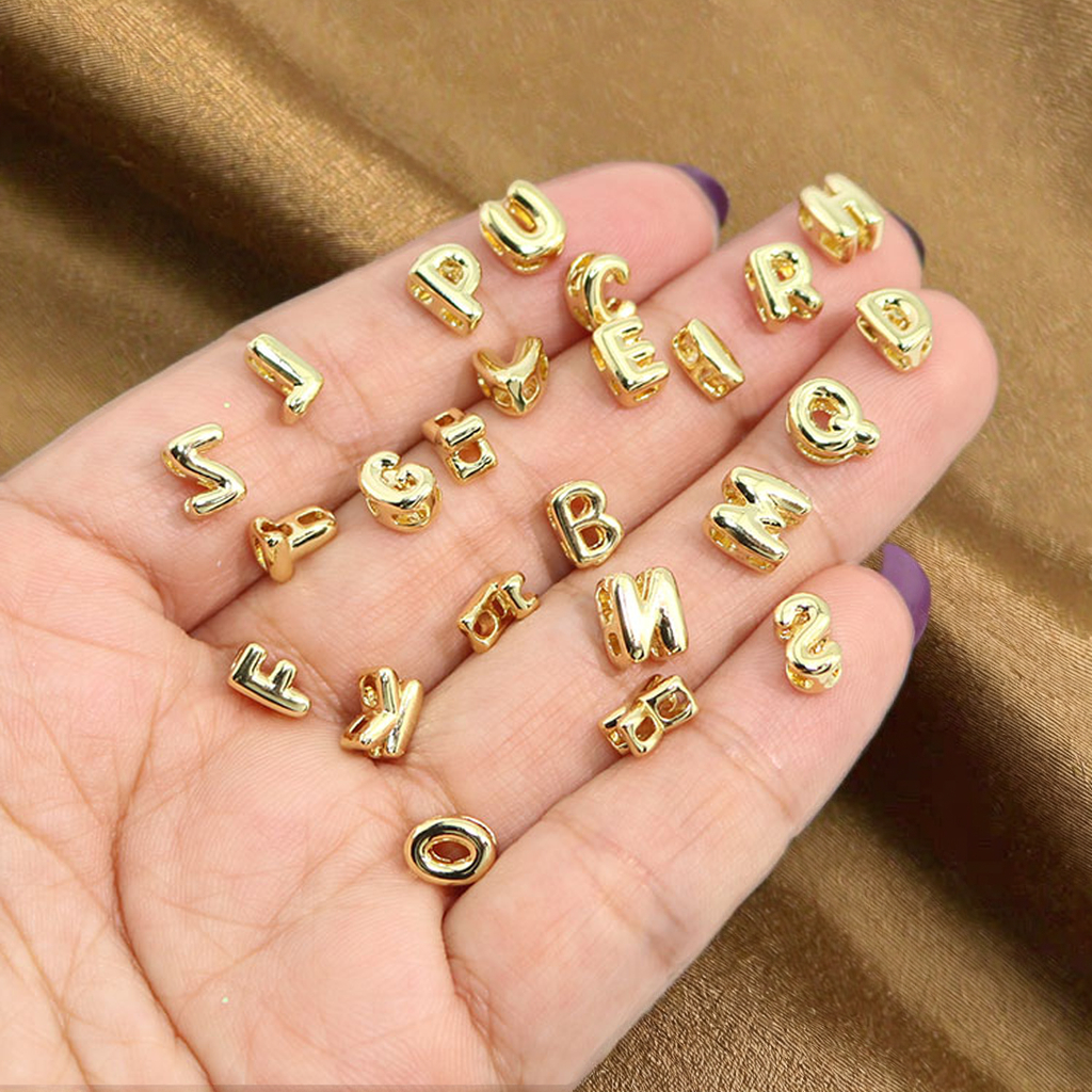 Js1755 18K mạ vàng mini Brass Bail nhỏ nhỏ bong bóng với Puffy ban đầu thư thanh trượt quyến rũ Mặt dây chuyền nhỏ ban đầu đồ trang sức