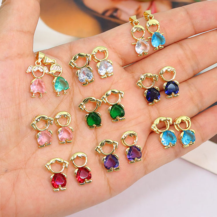 Nz1428 thanh nhã 18K mạ vàng Zircon Micro Pave cậu bé và cô gái trẻ em trẻ em quyến rũ Mặt dây chuyền bóng Chuỗi vòng cổ
