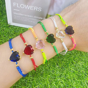 BC3014 Ngày Của Mẹ Dainty 18K Mạ Vàng Kim Cương Pha Lê CZ Zircon Oval Vòng Trái Tim Quyến Rũ Macrame Dây Chuỗi Vòng Tay