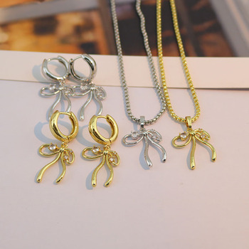 S11203 Chic Funky 18K oro plateado liso CZ Pave arco nudo pajarita cinta encanto cadena collar pendiente anillo conjuntos de joyas