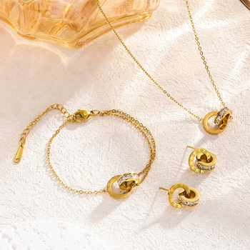 S11445 no deslustre chapado en oro de acero inoxidable entrelazado número romano delicadas pulseras de cristal collar pendiente conjuntos de joyería