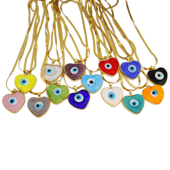 Ns1356 mạ vàng thép không gỉ rắn xương cá chuỗi đa màu lampwork xanh mắt ác tim Mặt dây chuyền của phụ nữ vòng cổ