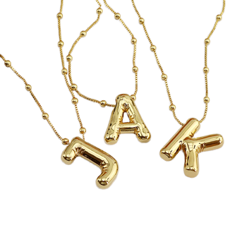 NM1291 Popular 18K chapado en oro Bubble Puff Puffy alfabeto letra encanto colgante collares globo inicial Collar para mujer