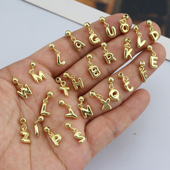 JS1784 Popular Dainty Tiny Mini Little 18K chapado en oro pequeño 3D globo hinchado alfabeto inicial letra encantos colgantes