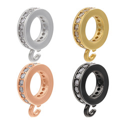CZ6529 18K ชุบทอง CZ Micro Pave Charm Holder rondelle spacers กับวงเปิด, ตัวเชื่อมจี้