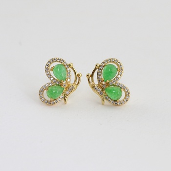 EYL1007มินิ18K ชุบทองสวยงามผีเสื้อคริสตัล CZ Micro Pave Dainty Jade STUD ต่างหูสำหรับเป็นของขวัญครบรอบวันเกิด
