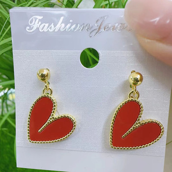 ต่างหูกระดุมรูปหัวใจแฟชั่นแบบห้อยจี้รูปหัวใจเคลือบสีสันสดใส EM1429เก๋ไก๋