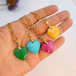 NN1174 Chic doğal taş yeşil yeşim kalp kolye 18K altın kaplama paslanmaz çelik dudak zincir kolye kadınlar için