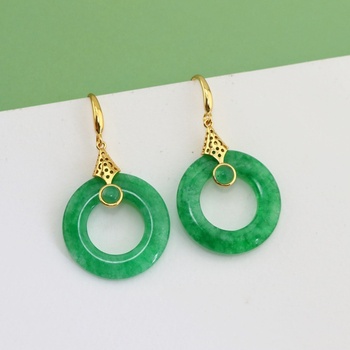 EYL1005 zarif doğal yeşil yeşim küpe 18K altın kaplama klasik dairesel tasarım güzel takı zarif günler için