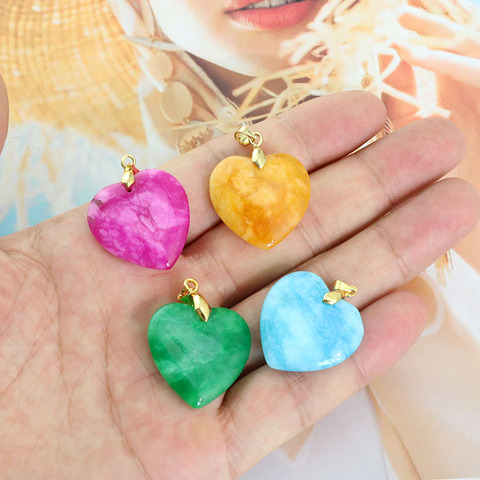 JF7363 takı malzemeleri büyük tıknaz gökkuşağı çok renkli altın sır Lampwork cam nazar kalp şekilli kolye ucu kolye