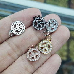 CZ9289 Mini 18k altın gümüş kaplama CZ açacağı barış işareti Charm kolye küçük altın CZ zirkon pirinç barış sembolü Charm kolye