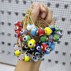 BG1156 Trendy bilezik çok renkli renkli Lampwork cam nazar Rondelle Abacus boncuk altın yılan zinciri temelde yapılan pirinç