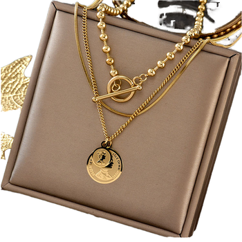 NS1247 3 katmanlı kadın kolye 3 üçlü 18k altın kaplama paslanmaz çelik zincir kolye setleri