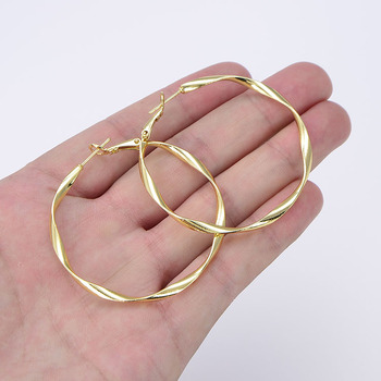 EM1227 basit 18k altın kaplama pirinç büyük büküm daire Hoop küpe kadınlar için
