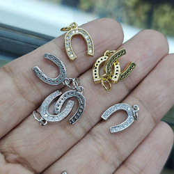 CZ9290 Dainty Mini 18k altın gümüş kaplama CZ açacağı at nalı Charm kolye küçük altın CZ zirkon pirinç Charm kolye