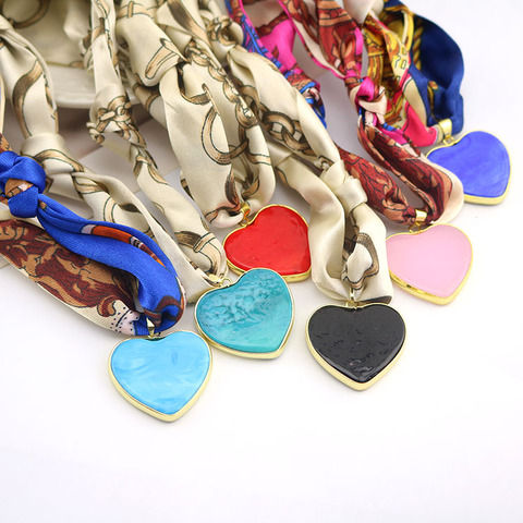 NSC1015 altın kaplama çok renkli Lampwork cam kalp kolye ipek düğümlü eşarp Bandana kolye kadın Femme bayanlar kolye