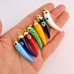 JF7358 sıcak takı malzemeleri gökkuşağı çok renkli altın kaplama sır Lampwork cam nazar biber boynuz Charm kolye